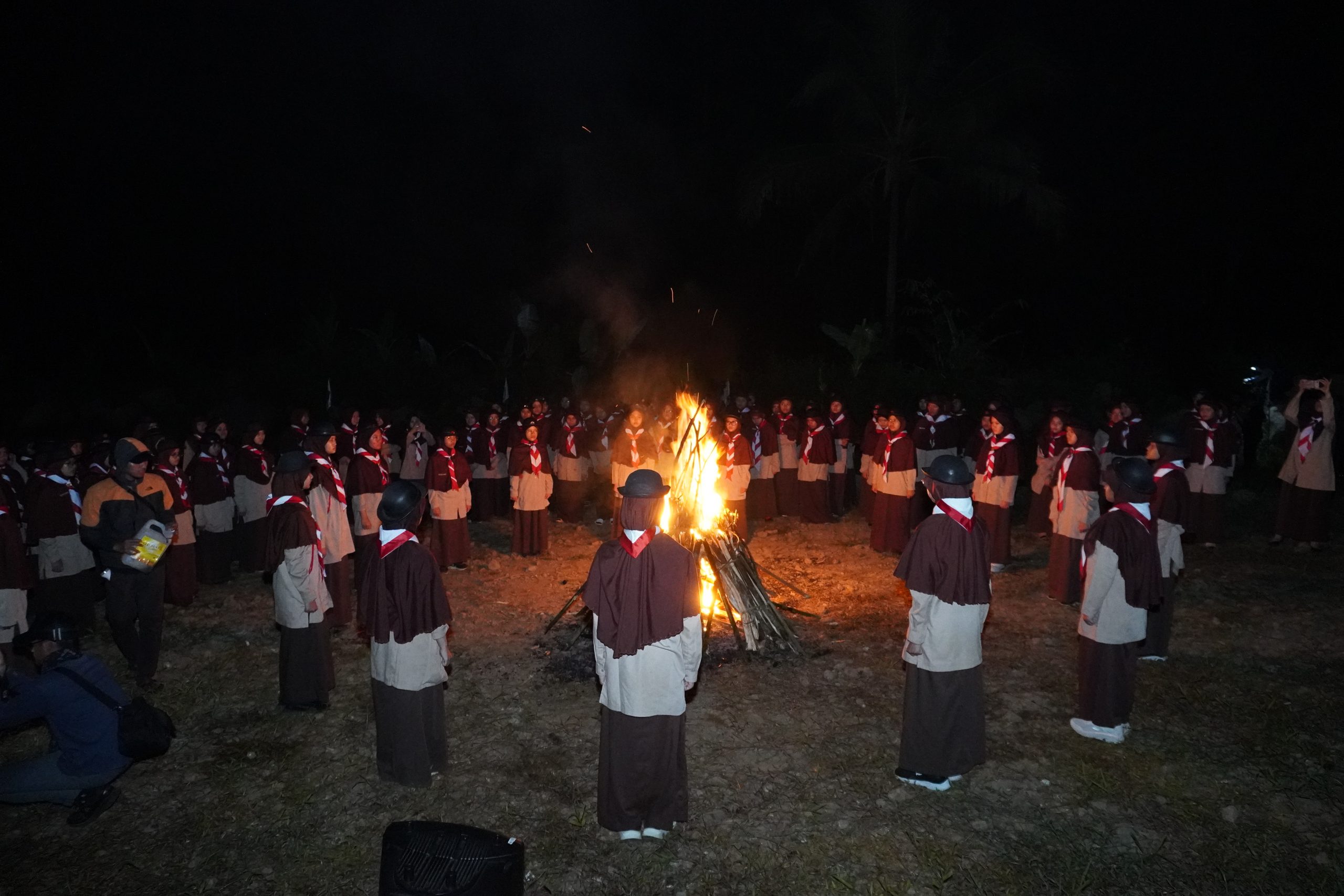 Kemudian sebanyak 10 peserta dan pembina upacara menyalakan api unggun bersama.