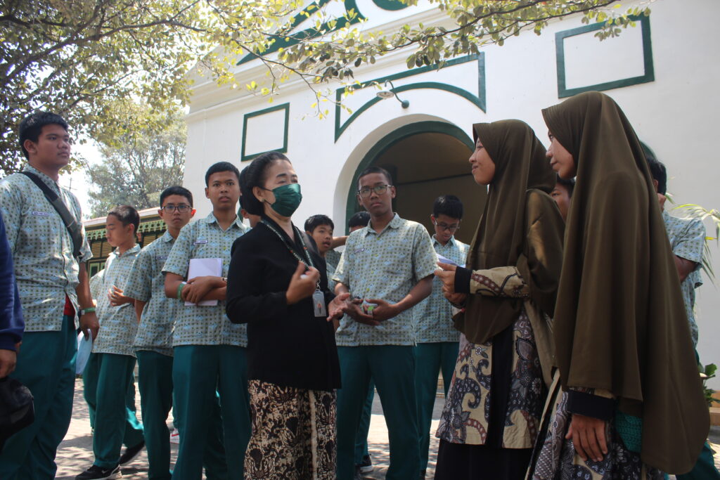 Setelah melewatinya, para siswa mendapat penjelasan bangunan-bangunan hingga koleksi barang antik bersejarah yang ada di keraton.