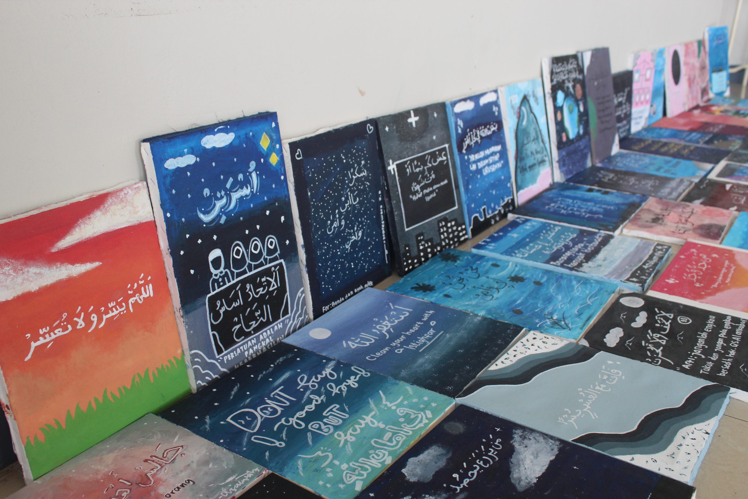 Santri AABS belajar membuat seni kaligrafi, games Islami dengan kosakata bahasa Arab, muhadhoroh bahasa Arab lengkap dengan MC dan hiburannya, hingga pelatihan membuat stiker religi.