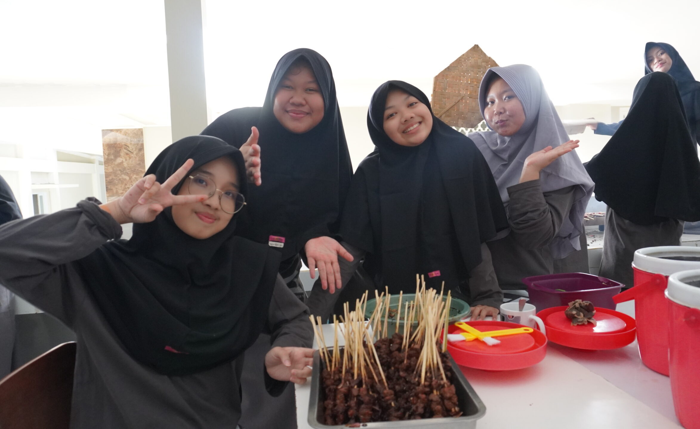 Daging, hati, babat, hingga tulang siap dimasak menjadi menu makanan lezat karya siswa. Tentunya dengan pendampingan ustaz dan ustazah. Seluruh siswa tampak antusias berlomba-lomba menghidangkan makanan olahan daging kambing yang enak.