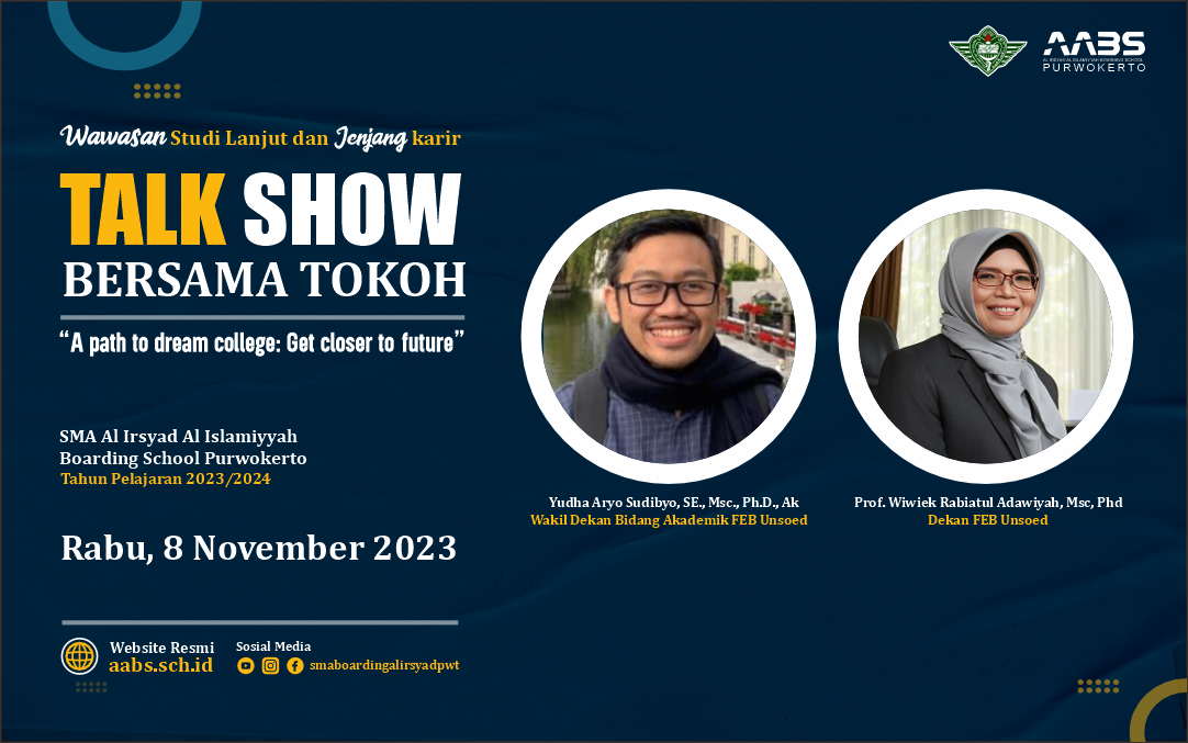 Purwokerto - Al Irsyad Al Islamiyyah Boarding School (AABS) Purwokerto menggelar talkshow bersama alumni, pada Jumat, 23 September 2022. Talkshow…
